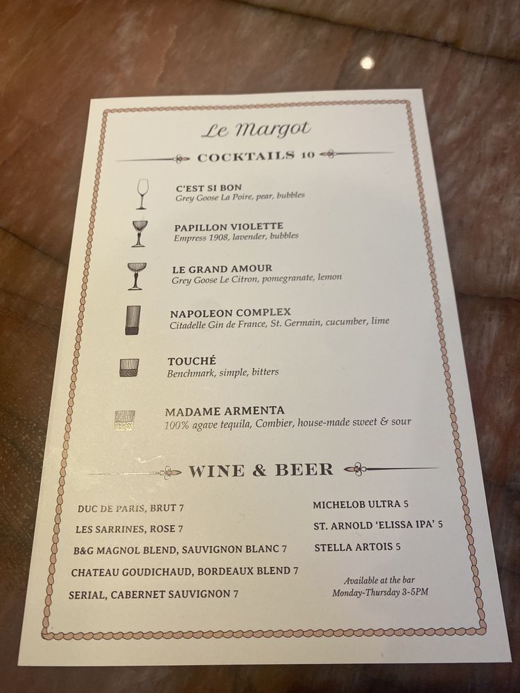 Le Margot, a French sandwich restaurant located in Fort Worth, offers a upscale and romantic dining experience. With a diverse menu including appetizers like steamed mussels and crispy calamari, as well as salads featuring roasted beet carpaccio and classic vichyssoise, Le Margot caters to a variety of tastes. Customers rave about the exceptional service and attention to detail, making every dining experience memorable. Highlights include the escargot pot pie, pan-seared scallops, and the deviled eggs with truffle. The stunning interior design adds to the overall ambiance of the restaurant, making it a must-visit location in Fort Worth. Whether you're a connoisseur of French cuisine or trying it for the first time, Le Margot promises a delightful and satisfying dining experience.